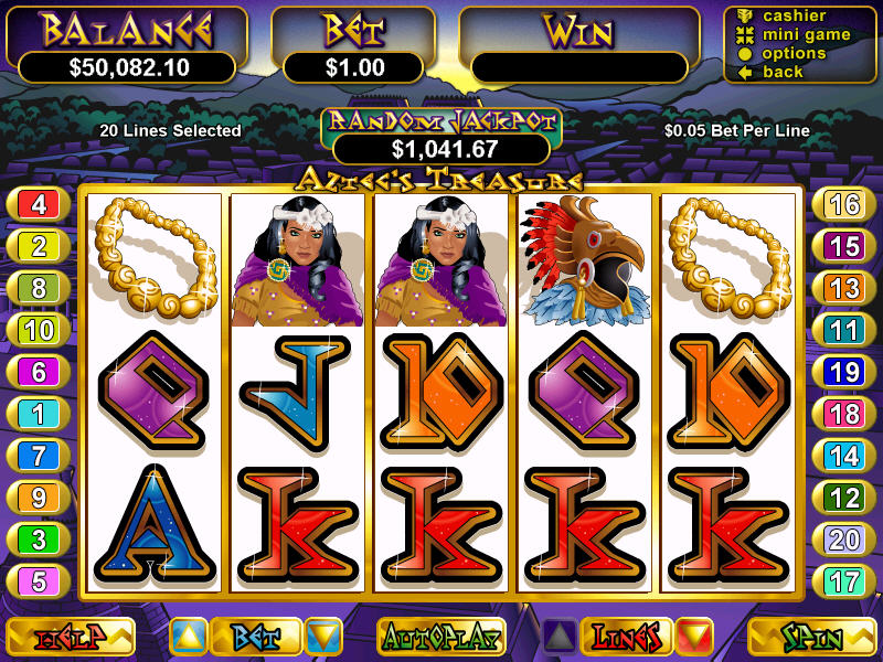 Travel back in time to discover wild treasures in the ancient civilization of the Aztecs. Gather scattered Idols to win a special payout or trigger the Free Game Feature. During the Free Game Feature, all wins are tripled, except the bonus prize, and you can win the bonus prize when scattered Idols appear anywhere during free games. Enjoy the privileges as a guest of the Aztec King, who matches all symbols, except scattered Idols. You can even take your chance at winning the Aztecās most sacred treasure, a randomly awarded progressive jackpot. |